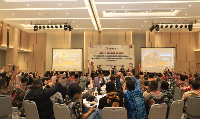 Rakernis Penyelesaian Sengketa proses Pemilu Tahun 2024 antar peserta Pemilu ini melibatkan 12 provinsi berikut kabupaten dan kota di dalamnya.