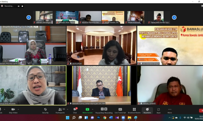 Dewi menjelaskan, secara umum kode etik bagi penyelenggara pemilu adalah suatu kesatuan asas moral, etika, dan filosofi yang menjadi pedoman perilaku bagi penyelenggara pemilu berupa kewajiban atau larangan, tindakan, ucapan yang patut atau tidak patut dilakukan mulai dari tingkat pusat hingga tingkat petugas TPS yang ad hoc (sementara). “Apabila kode etik ini dilakukan dengan baik, maka berdampak penyelenggaraan pemilu maupun pemilihan yang berintegritas,” katanya dalam webinar bertema Penegakkan Kode Etik Penyelenggara Pemilu Sebagai Upaya Merawat Demokrasi Berintegritas, Kamis (10/3/2022) yang diselenggarakan Bawaslu Provinsi Jambi secara daring.