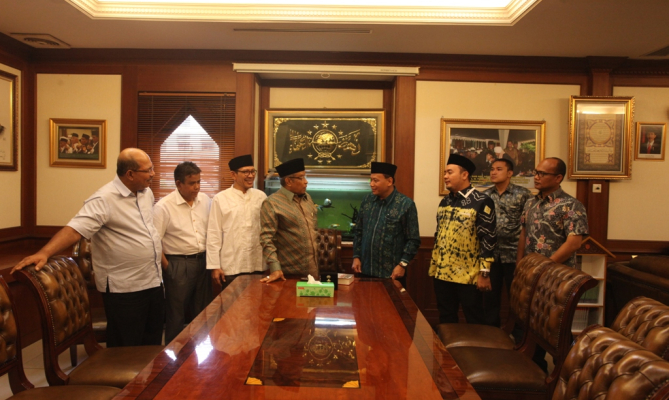 Jakarta, Badan Pengawas Pemilu – Ketua Bawaslu RI Abhan didampingi Anggota Bawaslu RI Mochammad Afifuddin mengunjungi Kantor Pengurus Besar Nahdlatul Ulama (PBNU) Jakarta. Kunjungan ke kantor PBNU tersebut selain untuk silaturahmi juga bertujuan mengajak PBNU untuk bersinergi dalam rangka mengefektifkan pengawasan pemilihan Gubernur, Bupati dan Walikota Serentak Tahun 2018 yang tahapannya juga akan beririsan dengan tahapan Pemililhan Umum Anggota Legislatif dan Pemilihan Presiden Tahun 2019.