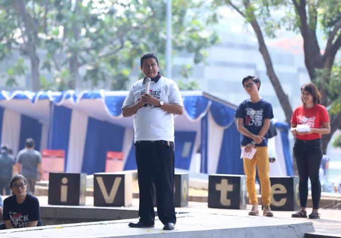 Ketua Bawaslu Muhammad saat menjadi narasumber dalam acara CEPP UI Rock The Vote Indonesia di Kampus UI. Dalam kesempatan tersebut Muhammad mengajak para mahasiswa untuk menjadi pengawas partisipatif.