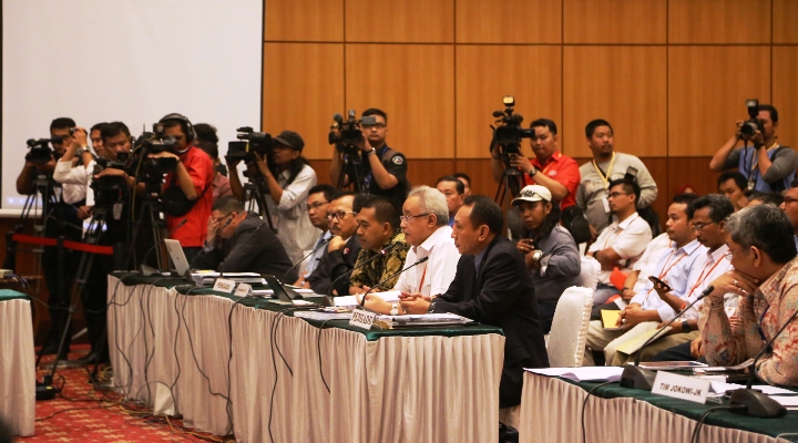 Jakarta, Bawaslu – Badan Pengawas Pemilihan Umum (Bawaslu) dan Komisi Pemilihan Umum (KPU) menghadiri sidang dugaan pelanggaran kode etik penyelenggara Pemilu yang digelar Dewan Kehormatan Penyelenggara Pemilu (DKPP), di Gedung Kemenag RI, Jakarta Senin (11/8).