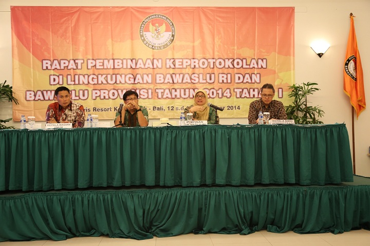 Bali, Badan Pengawas Pemilu - Biro Administrasi Badan Pengawas Pemilu sebagaimana dimaksud dalam Undang-Undang No 9 tahun 2010, Peraturan Pemerintah No. 62 tahun 1990 dan Pasal 6 Peraturan Bawaslu melaksanakan Rapat Pembinaan Keprotokolan di Lingkungan Bawaslu RI dan Bawaslu Provinsi Tahap I yang bertempat di Bali pada hari Jumat (12/9/2014).