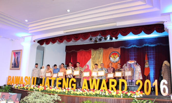 Semarang, Badan Pengawas Pemilu - Badan Pengawas Pemilihan Umum Provinsi Jawa Tengah menggelar Bawaslu Jateng Award 2016 di Wisma Perdamaian, Kota Semarang, Selasa malam (7/03). Bawaslu Award ini merupakan ajang penghargaan yang pertama kali diselenggarakan oleh Bawaslu Jateng.