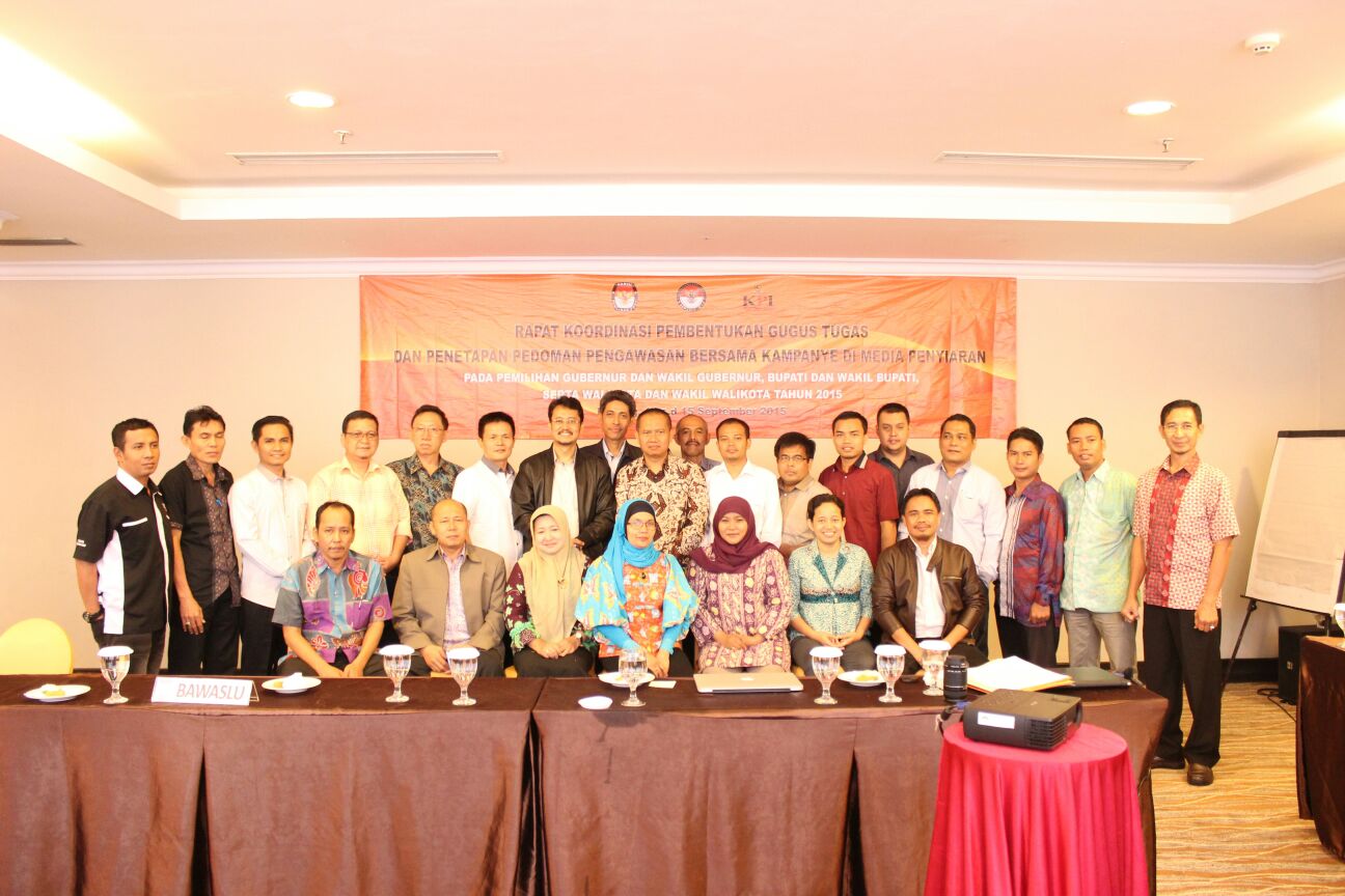 Bertempat di Hotel Bumi Minang Kota Padang, Bawaslu, KPU, dan KPI yang tergabung dalam gugus tugas ini merampungkan pedoman gugus tugas pengawasan dan pemantauan pemberitaan, penyiaran, dan iklan kampanye Pilkada 2015. Agenda rapat koordinasi yang berlangsung selama dua hari sejak Senin (14/9) hingga Selasa (15/9) tersebut membahas pedoman gugus tugas yang telah disusun sebelumnya oleh tim penyusun pedoman. Namun kali ini pembahasan pedoman juga melibatkan Bawaslu Provinsi, KPU Provinsi, dan KPID.