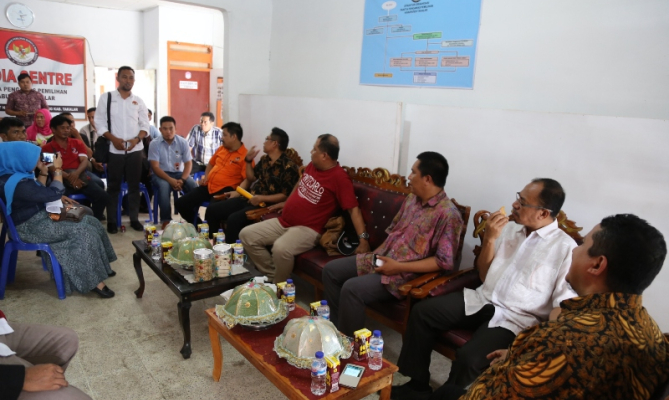 Rombongan Bawaslu RI juga menyempatkan diri menyambangi Kecamatan Polongbangkeng Utara untuk memantau langsung rekapitulasi perolehan suara dan melihat aspek keterbukaan oleh Panitia Pemilihan Kecamatan (PPK).