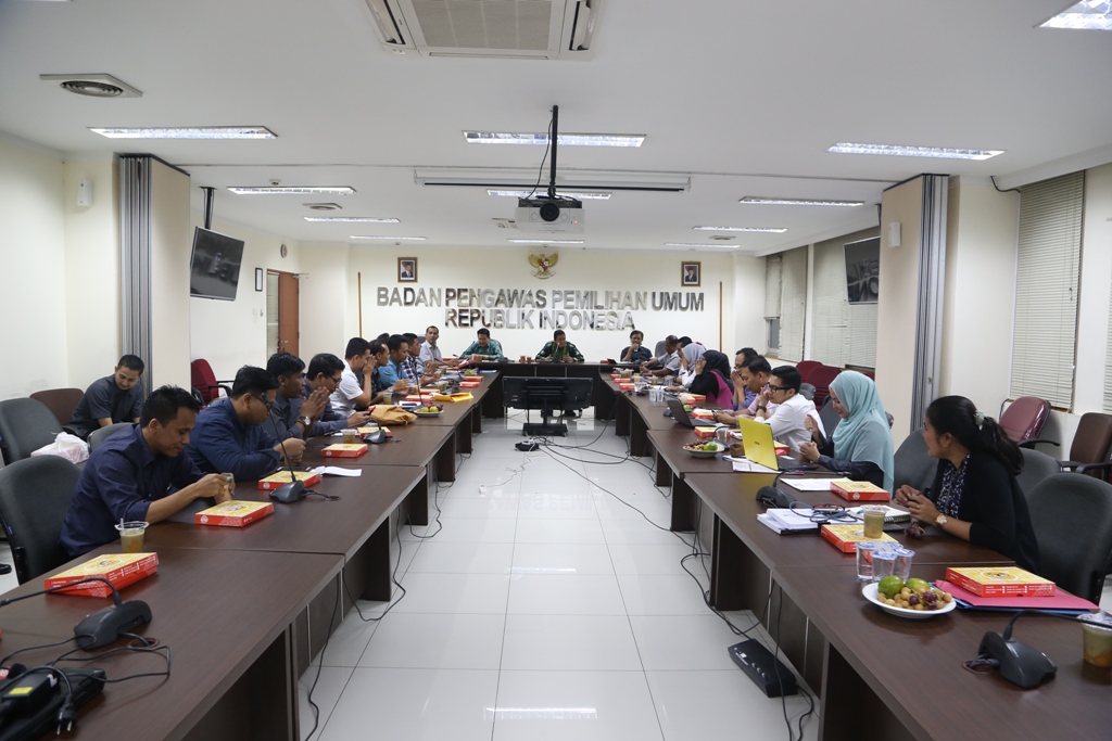 Jakarta, Badan Pengawas Pemilu - Jelang pemungutan suara ulang (PSU) jilid II di dua TPS pada Pemilihan Bupati dan Wakil Bupati di Kabupaten Muna, Bawaslu RI, KPU RI, Bawaslu Provinsi Sulawesi Tenggara, KPU Provinsi Sulawesi Tenggara bertemu dalam sebuah Rapat Kerja Terbatas terkait persiapan PSU tersebut di Ruang Rapat Lantai IV Gedung Bawaslu RI, Jl. MH. Thamrin No 14, Jakarta Pusat.