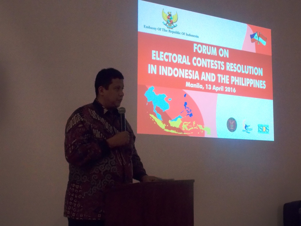 Manila, Badan Pengawas Pemilu – Jelang pelaksanaan pemilu di Filipina pada 9 Mei mendatang, Bawaslu RI diundang untuk berbagi ilmu tentang pengawasan pemilu di Negara tersebut. Pada acara bertema “Forum on Electoral Contest Resolution in Indonesia and the Philippines” yang berlangsung pada Rabu (13/4) kemarin di Manila, ketua Bawaslu RI Muhammad memaparkan bagaimana peranan pengawas pemilu dalam penegakan demokrasi di Indonesia.