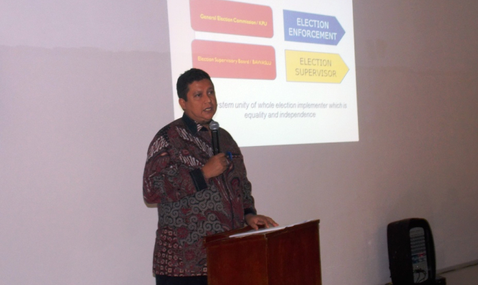Guru Besar Ilmu Politik Universitas Hasanuddin itu menceritakan tahapan pemilihan yang baru saja dan akan kembali berlangsung di Indonesia yakni Pemilihan Kepala Daerah secara serentak. Pada pelaksanaan pillkada tersebut, Bawaslu menyelesaikan sengketa Pemilihan Gubernur melalui Bawaslu Provinsi dan sengketa Pemilihan Bupati/Walikota oleh Panwaslu Kabupaten/Kota.