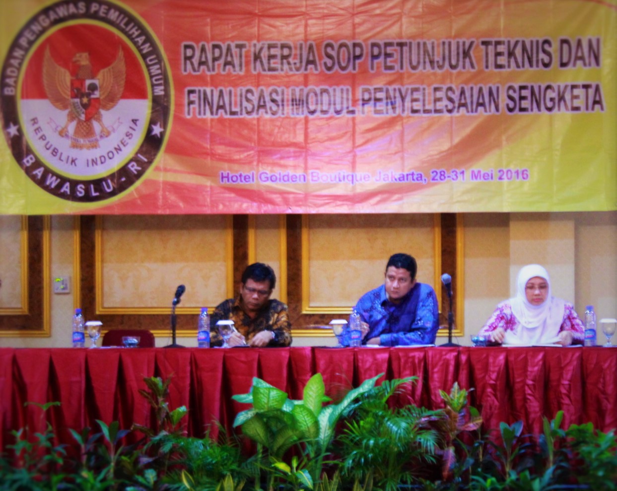 Rapat Kerja SOP Petunjuk Teknis dan Finalisasi Modul Penyelesaian Sengketa berlangsung dari 28 hingga 31 Mei 2016. Acara ini dihadiri oleh perwakilan dari 14 Bawaslu Provinsi. Sebelumnya acara serupa juga telah digelar sebanyak dua kali dengan menghadirkan bawaslu dari 20 provinsi lainnya. Bagian Penyelesaian Sengketa juga menghadirkan narasumber dari Kementerian Peandayagunaan Aparatur Negara dan Reformasi Birokrasi untuk memandu teknis penyusunan SOP yang baik.