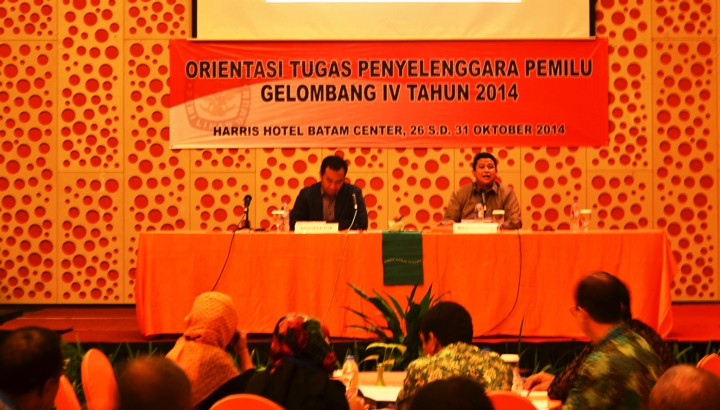 Batam, Badan Pengawas Pemilu - Ketua Bawaslu Muhammad diundang Komisi Pemilihan Umum (KPU) untuk menjadi narasumber dalam acara Orientasi Tugas Penyelenggara Pemilu Gelombang IV tahun 2014, yang dilaksanakan tanggal 26 – 31 Oktober 2014 selama 5 hari. Kegiatan dilaksanakan di Hotel Harris, Jl Engku Putri, Batam Center, Kota Batam, Kepulauan Riau, diikuti oleh 60 peserta dari 10 KPU Provinsi, terdiri dari masing-masing provinsi yaitu lima komisioner dan satu orang sekretaris setiap provinsi, yang sudah dilantik namun belum mengikuti orientasi sebelumnya. Diundang juga narasumber dari berbagai lembaga terkait seperti KPK , MK, dan sebagainya.