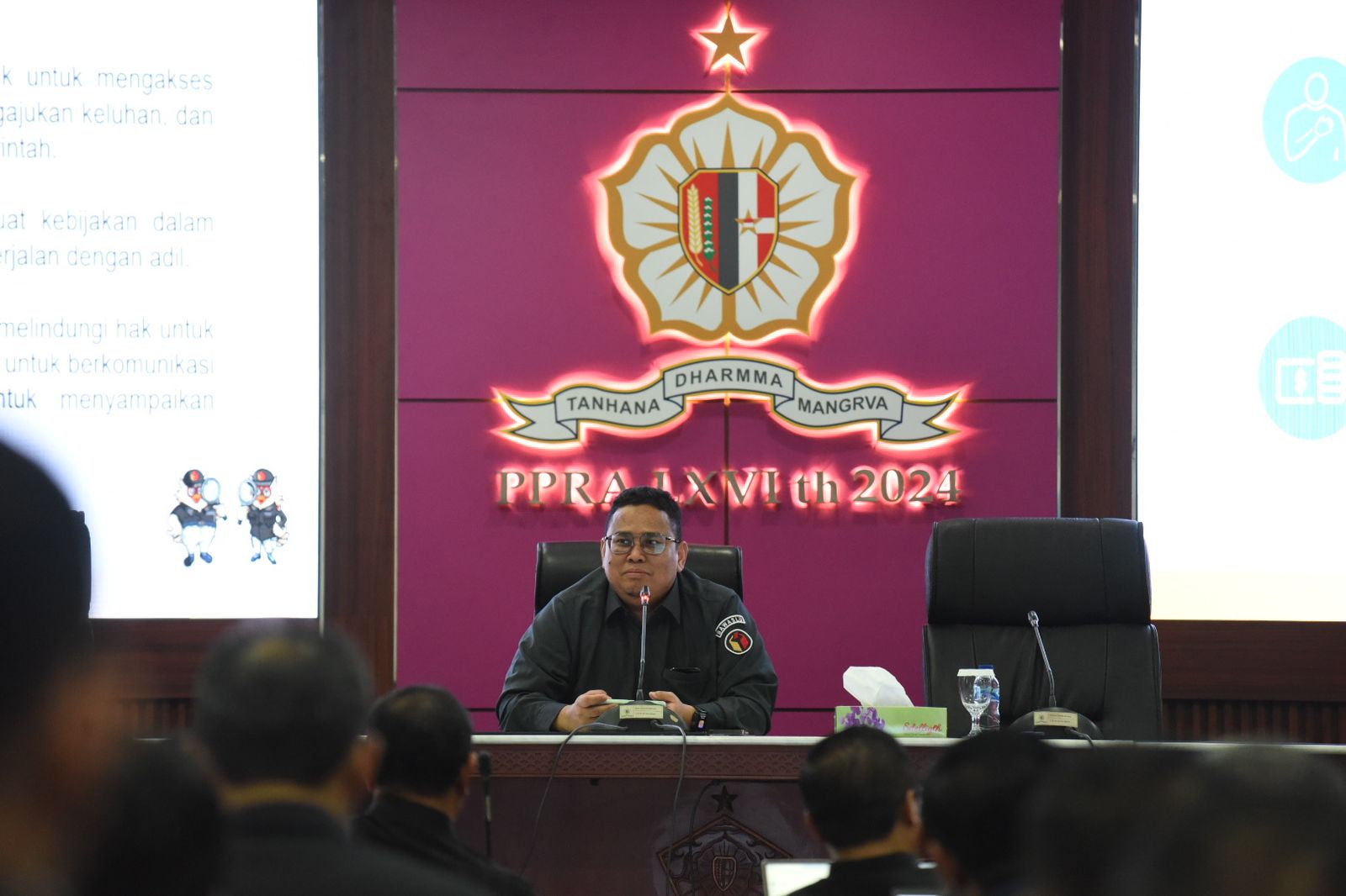 Jakarta, Badan Pengawas Pemilihan Umum- Ketua Bawaslu Rahmat Bagja memberi kuliah singkat kepada calon para pimpinan strategis nasional dalam Program Pendidikan Reguler Angkatan (PPRA) LXVI Tahun 2024 yang digelar Lemhanas. Dalam kuliahnya, dia menyampaikan mengenai pentingnya perlindungan hak politik bagi warga bangsa.