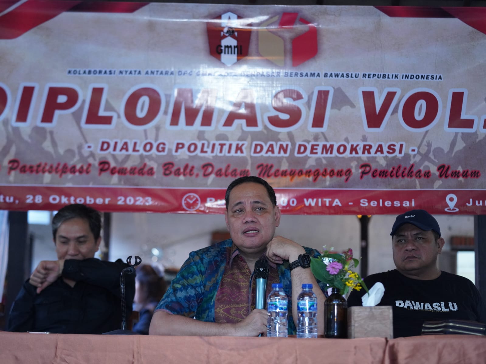 Anggota Bawaslu Herwyn Malonda dalam Dialog Politik dan Demokrasi bertema Gerakan Partisipasi Pemuda Bali dalam Menyongsong Pemilu 2024, di Bali, Sabtu (28/10/2023).