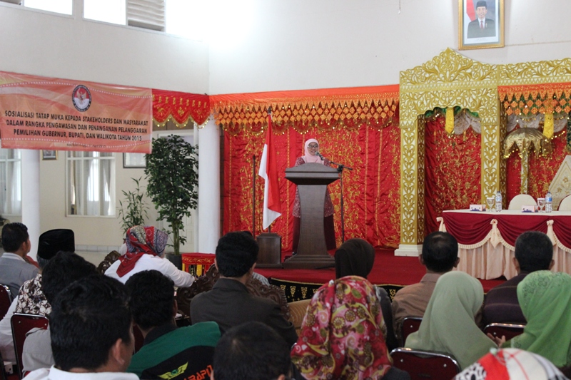 Padang, Badan Pengawas Pemilu - Rangkaian kegiatan Bawaslu RI dalam menghadapi pemilihan Gubernur, Bupati dan Walikota tahun 2015 mulai berjalan. Kali ini Bawaslu RI mengadakan kegiatan sosialisasi melalui tatap muka kepada stakeholders dan masyarakat tentang pengawasan dan penanganan pelanggaran di kota Bukittinggi dan Kabupaten Tana datar Provinsi Sumatera Barat.