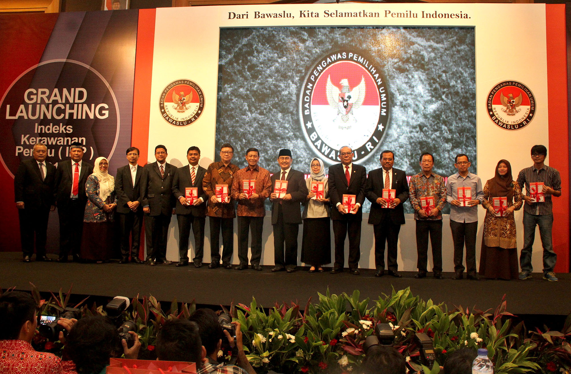 Beberapa Kementerian/lembaga terkait dan pegiat Pemilu menerima hasil penelitian Bawaslu berupa Indeks Kerawanan Pemilu (IKP) pada Pilkada tahun 2017 pada acara Grand Launching IKP Pilkada 2017, Senin (29/8) di Hotel Aryaduta, Jakarta.