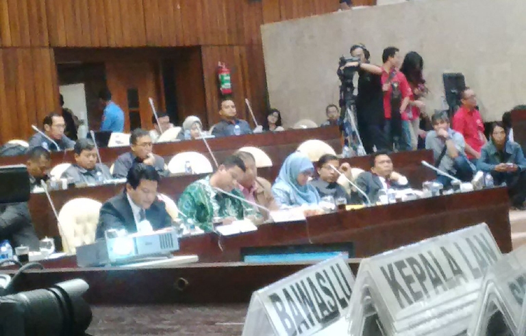 Dalam RDP tersebut, hadir Ketua Bawaslu Muhammad, Nasrullah, Endang Wihdatiningtyas, Daniel Zuchron, dan Nelson Simanjuntak. Sedangkan dari KPU hadir Ketua KPU Husni Kamil Manik, Hadar Navis Gumay, Arief Budiman, Ida Budhiati, Juri Ardiantoro, dan Sigit Pamungkas.