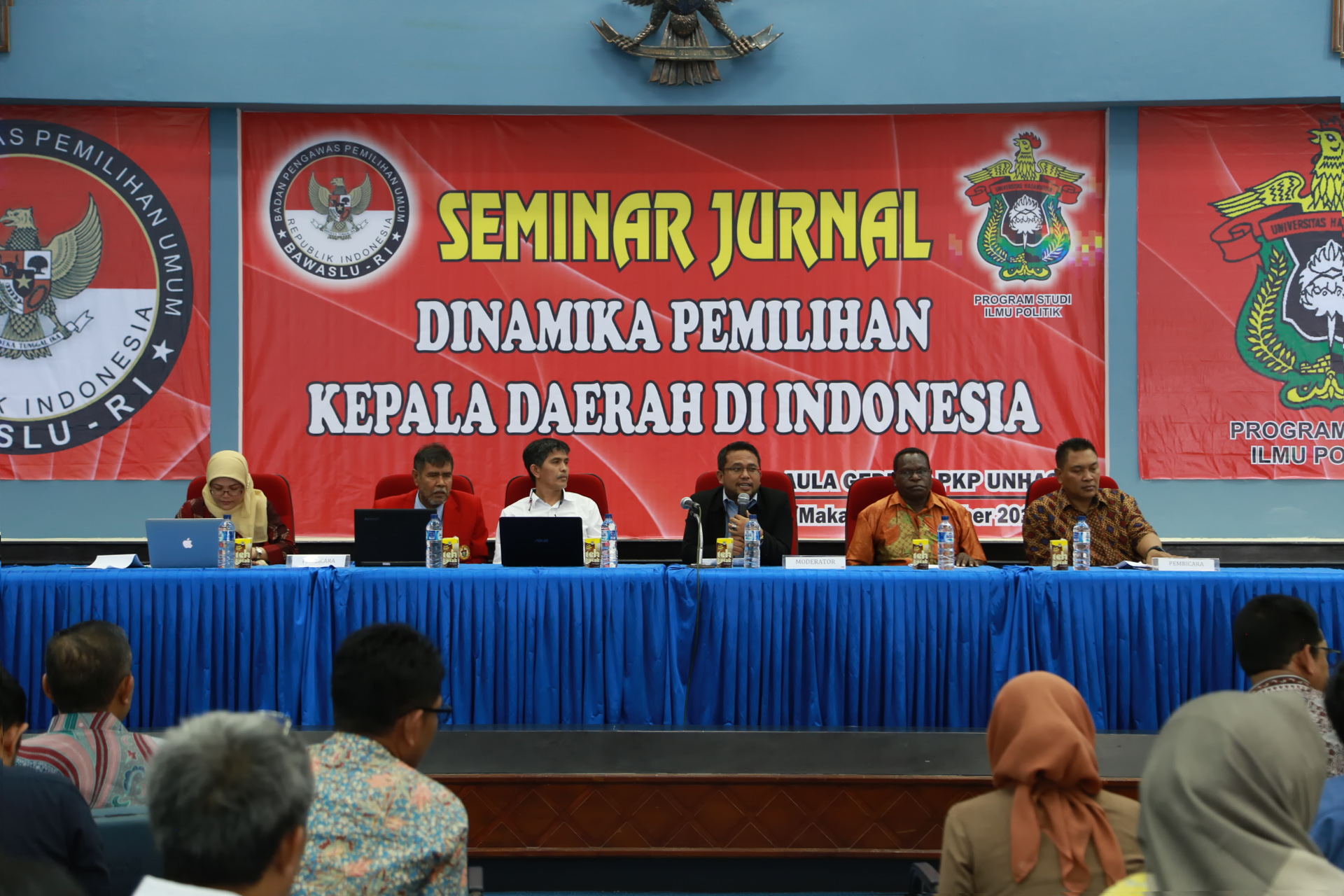 Makassar, Badan Pengawas Pemilu – Badan Pengawas Pemilihan Umum (Bawaslu) Republik Indonesia bekerjasama dengan Universitas Hasanuddin (Unhas) Makassar, menyelenggarakan Seminar Jurnal : Dinamika Pemilihan Kepala Daerah di Indonesia, di Gedung Pusat Kegiatan Penelitian (PKP) Unhas, Makassar Sulawesi Selatan, Kamis (6/10). Seminar Jurnal ini diselenggarakan dengan tujuan memberikan kesempatan kepada para penulis artikel pada Jurnal Bawaslu RI Edisi II Tahun 2016, untuk mempresentasikan hasil penelitian mengenai dinamika yang terjadi pada penyelenggaraan pemilihan kepala daerah dari berbagai daerah di Indonesia.