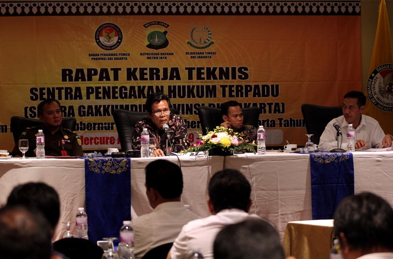 Jakarta, Badan Pengawas Pemilu - Bertempat di Hotel Mercure Ancol Jakarta Utara, Rabu (28/3), Tim Sentra Gakkumdu DKI Jakarta yang terdiri dari Bawaslu DKI Jakarta, Polda Metro Jaya, dan Kejaksaan Tinggi DKI Jakarta kembali bertemu dalam rangka Rapat Kerja Teknis (Rakernis) Sentra Penegakan Hukum Terpadu (Sentra Gakkumdu Provinsi DKI Jakarta). Kegiatan ini bertujuan menyamakan visi dan misi guna menghadapi Pemilihan Gubernur dan Wakil Gubernur DKI Jakarta putaran kedua tahun 2017.