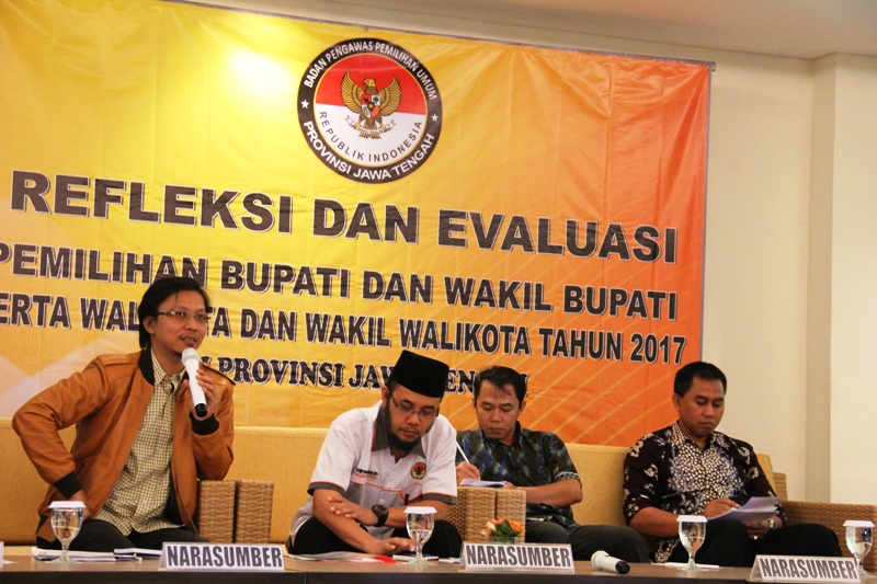 Hal itu disampaikan Pimpinan Bawaslu RI, Daniel Zuchron saat kegiatan Potret Pengawasan Pilkada Tahun 2017 di Jawa Tengah yang digelar di The Wujil Resto, Ungaran, Kabupaten Semarang, Kamis (30/3). Hadir dalam kegiatan ini Pimpinan Bawaslu Jateng Teguh Purnomo, Komisioner KPU Jateng Ichwanuddin, Peneliti Percik – anggota Dewan Pengarah JPPR Heri W Trisaksono dan berbagai stakeholder terkait mulai dari unsur Satpol PP, Kesbangpol, Diskominfo, Panwas hingga KPU tujuh kabupaten/kota yang menggelar Pilkada serentak tahap II. Kegiatan ini juga disemarakkan dengan penyerahan apresiasi dan piagam penghargaan kepada Pemkab/Pemkot tujuh kabupaten/kota yang mendukung pelaksanaan gawe demokrasi di wilayahnya.