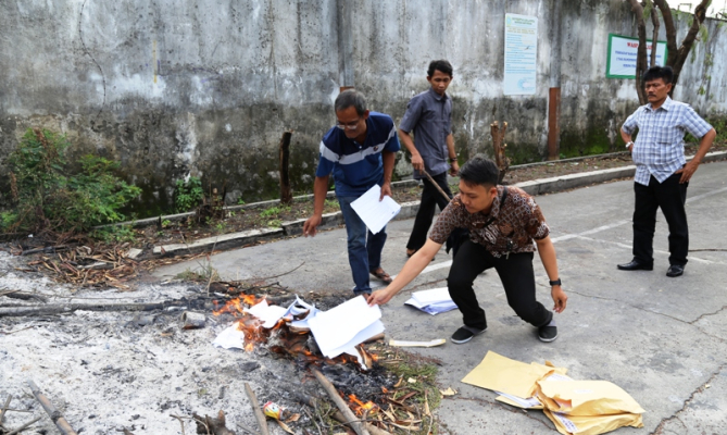 Di akhir pelaksanaan tes, dilakukan pemusnahan seluruh lembar soal dengan cara dibakar. Hal ini dilakukan supaya naskah soal tidak beredar atau bocor ke daerah lain yang belum melaksanakan tes tulis.