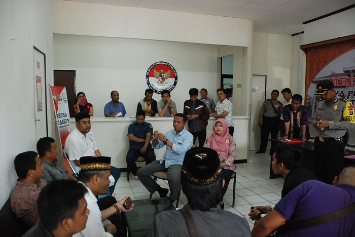 Suasana Kantor Panwaslih Kota Balikpapan saat didatangi oleh perwakilan kelompok pendukung pasangan calon (paslon) yang berjumlah 10 orang mengadukan tindaklanjut permasalahan indikasi terjadi politik uang pada gelaran Pemilihan Walikota Balikpapan, Jumat (11/12).