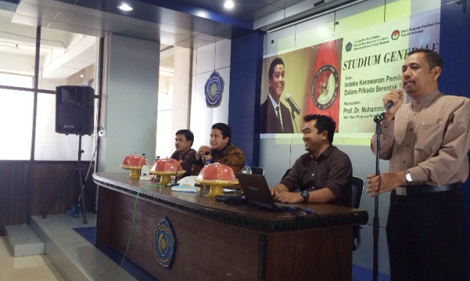 Pemaparan tersebut disampaikan Ketua Bawaslu RI Muhammad dalam acara Studium Generale dengan tema Indeks Kerawanan Pemilu Dalam Pemilihan Kepala Daerah (Pilkada) Serentak 2015 di Kampus Universitas Muhammadyah (Unismuh) Makassar, Sulawesi selatan, Senin (5/10) yang diikuti mahasiswa strata satu dan pasca sarjana Fisip Unismuh dengan moderator oleh Wakil Rektor 1 Dr. H. Abdul Rahman Rahim SE, MM.