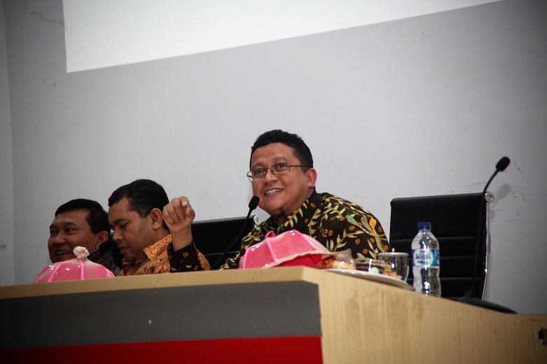 Ketua Bawaslu saat menjadi Narasumber dalam kegiatan Seminar Nasional dengan Tema “Polemik Penyelenggaraan Pilkada Serentak” yang digelar oleh Himapem Fisip Unhas, di Aula Prof. Amiruddin Kampus Unhas Makassar, Kamis (23/3).