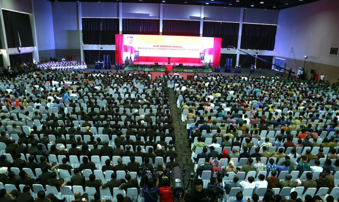 Hadir dalam Rakornas para Menteri Kabinet Kerja, Kapolri, Panglima TNI, Jaksa Agung, jajaran lembaga tinggi negara, penyelenggara Pemilu (Ketua Bawaslu dan Ketua KPU), serta para gubernur/bupati/walikota se-Indonesia. Total peserta sebanyak 3214.