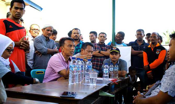 Aceh Besar, Badan Pengawas Pemilihan Umum - Ketua Panitia Pengawas Pemilihan Kabupaten Aceh Besar Mizan Muhammad, bersama Kapolres Aceh Besar AKBP Heru Suprihasto, Ketua Komisi Independen Pemilihan Kabupaten Aceh Besar Cut Agus Fathillah, dan Komisioner Komisi Independen Pemilihan Aceh Fauziah melakukan mediasi terhadap saksi pasangan calon yang melakukan protes. Saksi meminta agar proses penghitungan suara dihentikan dan menghitung ulang surat suara yang ada di meja panitia pemungutan suara dan mencocokkannya dengan surat undangan yang ada di TPS 1, Gampong Reukih Dayah, Kecamatan Indrapuri, Kabupaten Aceh Besar, Rabu (15/2).