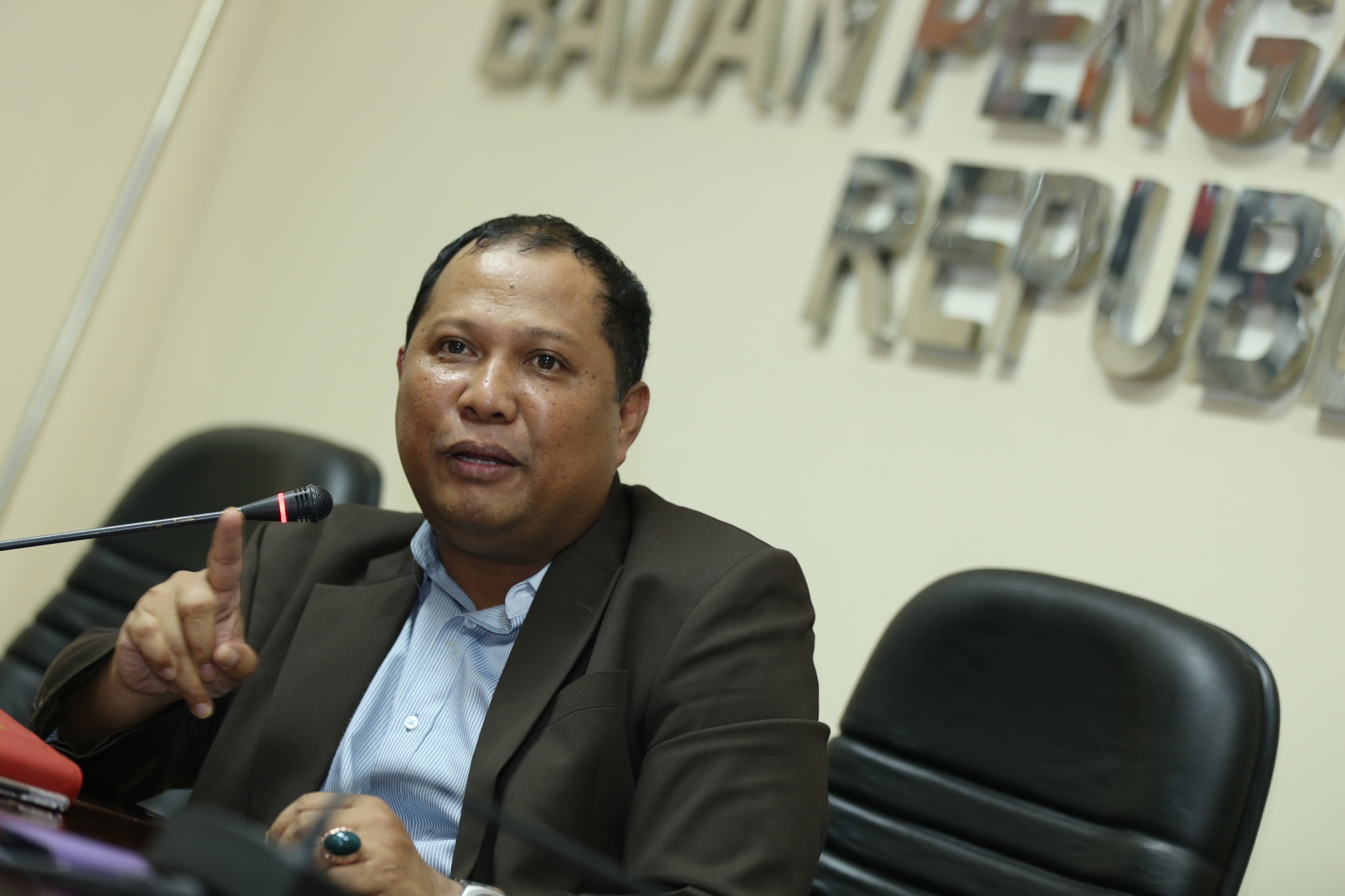 Chairman of Election Supervisory Board of the Republic of Indonesia, Nasrullah, as a guest speaker in a public discussion at the Office of Election Supervisory Board of the Republic of Indonesia some time ago.