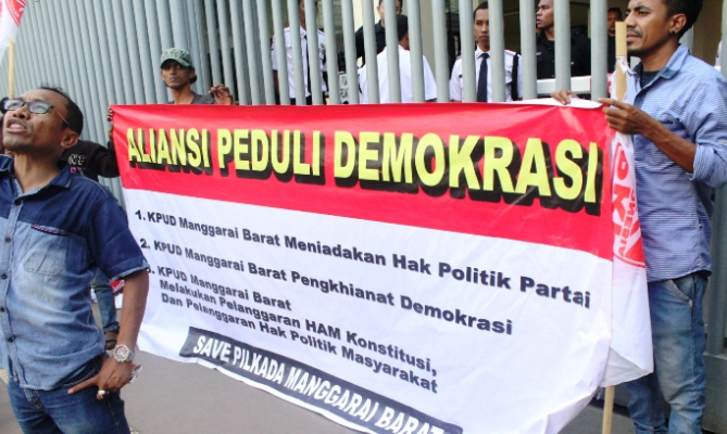 Sebelumnya, rombongan pengunjuk rasa juga mendatangi Gedung KPU di Jalan Imam Bonjol Barat, dan meminta hal serupa. Menurut mereka, KPU Manggarai Barat secara sewenang-sewenang tidak meloloskan  pasangan Pranda-Paju karena alasan administrastif tanpa melakukan penelitian dan verifikasi terhadap berkas.