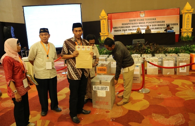 Proses rekapitulasi suara pada pleno terbuka KPU Sulsel, yang berlangsung sejak hari Jumat (18/7) secara umum berlangsung lancar. Meski beberapa kali sempat di skors oleh pimpinan sidang pleno dari komisioner KPU Sulsel baik atau permintaan komisioner Bawaslu Sulsel maupun saksi dua pasangan capres.  Beberapa kabupaten/kota yang pembahasannya cukup alot dikarenakan ada perbedaan data,  antara lain Kota Makassar, Kabupaten Luwu Utara dan Kabupaten Janeponto.  Sidang sempat di skors guna memberikan kesempatan kepada KPU, Bawaslu dan saksi pasangan capres untuk mencocokkan data lapangan pada setiap tingkatan.