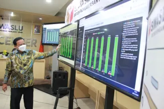 “Jadi kita sudah bisa langsung rilis, misalnya berapa kira-kira TPS dibuka sesuai jamnya atau tidak, lalu tutupnya sesuai jamnya tidak. Kemudian kejadian menonjol apa. Itu bisa langsung ditarik,” papar lelaki asal Sidoarjo itu.