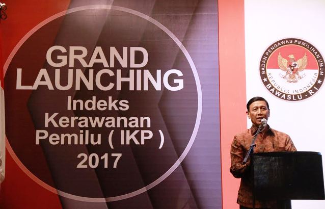 Jakarta, Badan Pengawas Pemilu – Badan Pengawas Pemilihan Umum (Bawaslu) meluncurkan Indeks Kerawanan Pemilu (IKP) untuk Pemilihan Kepala Daerah (Pilkada) Tahun 2017 mendatang, di Jakarta, Senin (29/8). Berdasarkan penilaian IKP, tiga dari tujuh provinsi yakni provinsi Aceh, Banten, dan Papua Barat masuk kategori Pilkada dengan tingkat kerawanan yang tinggi.