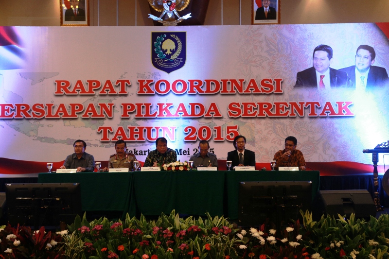 Jakarta, Badan Pengawas Pemilu – Kementerian Dalam Negeri menggelar rapat koordinasi (Rakor) persiapan Pilkada serentak tahun 2015 di Balai Kartini Jakarta, Senin, (4/5). Rakor ini dihadiri 269 kepala daerah dan ketua DPRD yang akan melaksanakan Pilkada serentak desember mendatang.