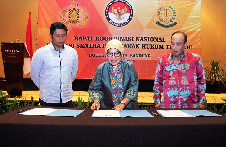Bandung, Badan Pengawas Pemilu - Rapat Koordinasi Nasional (Rakornas) Evaluasi Sentra Penegakan Hukum Terpadu (Gakkumdu) Pemilihan Gubernur, Bupati, dan Walikota tahun 2017 menghasilkan Piagam Bandung yang berupa komitmen bersama antara Pengawas Pemilu, Kepolisian, dan Kejaksaan dalam membangun sinergitas mengawal pelaksanaan Pemilu di Indonesia.