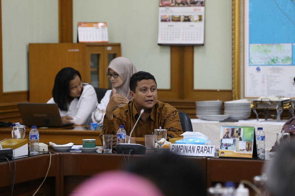 Ketua Bawaslu RI, Muhammad pada kegiatan Trilateral Meeting antara Badan Pengawas Pemilu (Bawaslu), Komisi Pemilihan Umum (KPU) dan Dewan Kehormatan Penyelenggara Pemilu (DKPP) di ruang rapat lantai I Gedung KPU RI, Jl. Imam Bonjol No. 29, Jakarta. Selasa (5/4).