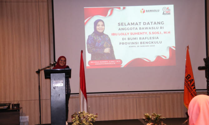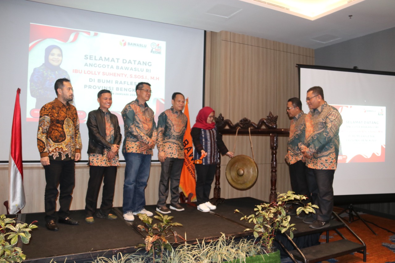 Bengkulu, Badan Pengawas Pemilihan Umum Provinsi Bengkulu - Anggota Bawaslu, Lolly Suhenty membuka secara resmi kegiatan Rapat Koordinasi Pengawasan Pemutakhiran Daftar Pemilih dan Penyusunan Daftar Pemilih yang di gelar oleh Bawaslu Provinsi Bengkulu, di Hotel Mercure Bengkulu, Kamis (26/01/2023).