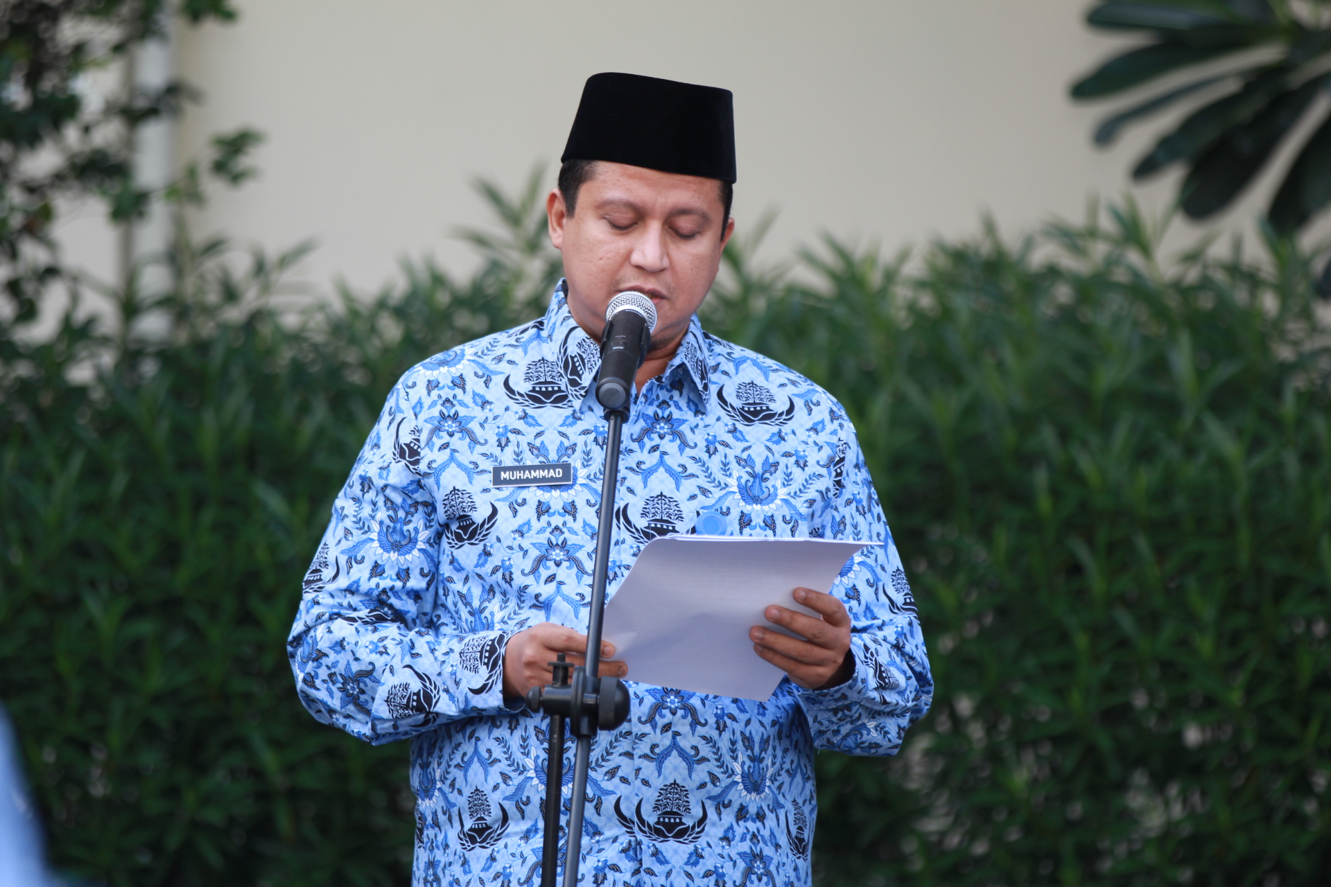 Ketua Bawaslu RI Muhammad yang bertindak sebagai Inspektur Upacara menyampaikan naskah pidato Menteri Komunikasi dan Informatika (Menkominfo) RI Rudi Antara. Satu hal yang begitu digarisbawahi oleh Muhammad yakni seruan dari Menkominfo untuk melakukan kebiasaan-kebiasaan yang benar dan bukan sekadar membenarkan hal-hal yang biasa.