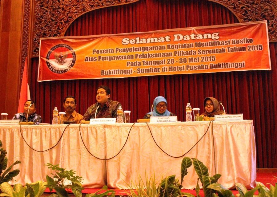 Kegiatan Identifikasi Resiko Atas Pengawasan Pelaksnaan Pilkada Serentak Tahun 2015 diadakan Bagian Pengawasan Internal dan Tata Laksana Bawaslu RI. Acara yang berlangsung dari 28 Mei itu dihadiri Pimpinan Bawaslu RI Endang Wihdatiningtyas, pimpinan Bawaslu provinsi yang akan menggelar pilkada serentak tahun 2015. Serta Panwaslu Kabupaten/Kota di Provinsi Sumatera Barat yang juga akan melaksanakan pilkada serentak. Hadir pula beberapa pejabat struktural dari semua bagian dan biro Bawaslu RI.
