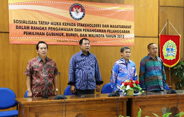 Hadir dalam kesempatan itu Wakil Bupati Gunung Kidul DR. Himawan Wahyudi. Asek I Pemerintahan Gunung Kidul dan beberapa Omas, Kejaksaan, juga dari kepolisian mahasiswa dan pelajar. Bawaslu RI hadir di Kabupaten Gunung Kidul adalah kabupaten yang  pertama kali ‘disentuh’ bersama dengan Kabupaten Karawang dalam gelaran tatap muka Stakeholder terkait Pengawasan dana Kampanye.