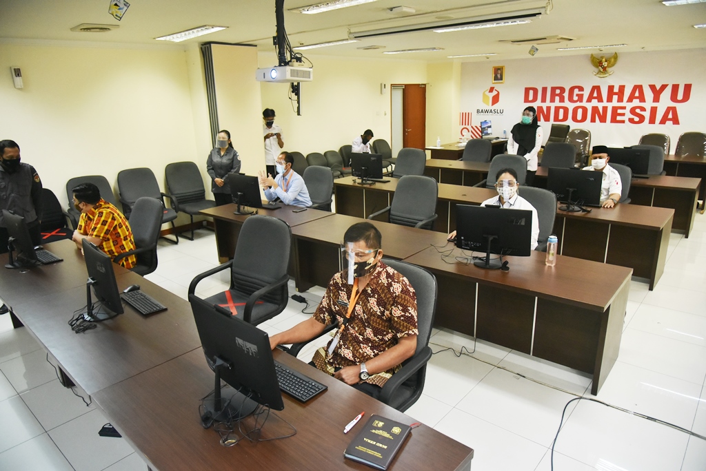 Jakarta, Badan Pengawas Pemilihan Umum - Badan Pengawas Pemilihan Umum melaksanakan Uji Kopetensi Teknis dengan metode Computer Assisted Tes (CAT), Rabu (19/8/2020). Pelaksanaan Uji Kopetensi CAT tersebut merupakan pelamar yang dinyatakan lulus seleksi administrasi yang telah dilakukan sebelumnya untuk Calon Pejabat Pimpinan Tinggi Pertama Kepala Sekretariat Bawaslu Provinsi.