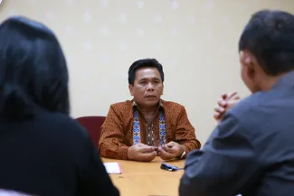 Jakarta, Badan Pengawas Pemilu - Pimpinan Bawaslu Nelson Simanjuntak menerima audiensi dari Pemantau Pijar dan Keadialan dalam rangka membahas persoalan dana kampanye penyelenggaraan Pemilihan Kepala Daerah (Pilkada) Tahun 2017, Rabu (2/11). (HW)