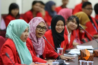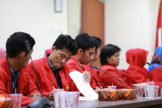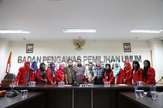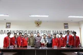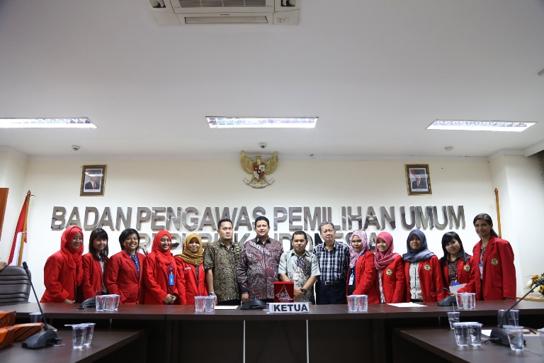 Jakarta, Badan Pengawas Pemilu - Ketua Bawaslu Muhammad mengajak Mahasiswa dan kalangan akademisi untuk melakukan pengawasan partisipatif sebagai srategi penguatan pengawasan pemilu. hal tersebut disampaikan pada saat pertemuan dengan Universitas Hasanuddin dalam rangka studi lapangan dengan penyelenggara pemilu, Selasa (26/5) di Gedung Bawaslu. (HW)