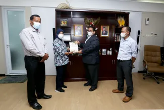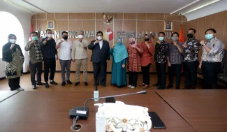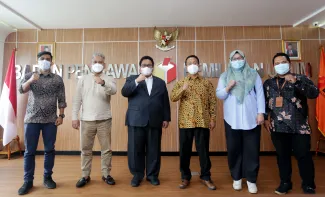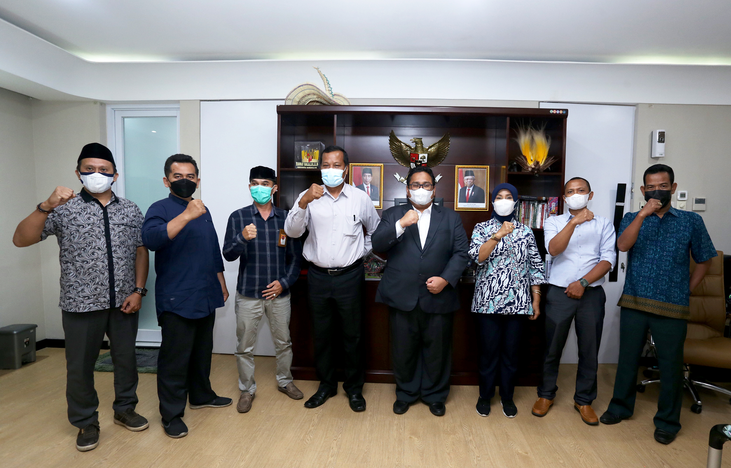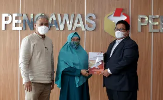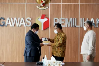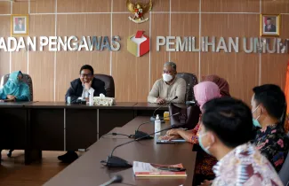 Jakarta, Badan Pengawas Pemilu- Anggota Bawaslu, Rahmat Bagja selaku Koordinator Divisi Penyelesaian Sengketa menerima secara langsung Laporan Akhir Penyelesaian Sengketa Pemilihan Tahun 2020 dari Divisi Penyelesaian Sengketa Bawaslu Provinsi Kepulauan Riau, Bangka Belitung dan Sumatera Barat, di Jakarta, Jumat, (26/2/2021) yang bertempat di Gedung Bawaslu Jalan MH Thamrin Jakarta. Dalam pertemuan tersebut Rahmat Bagja mengapresiasi Bawaslu Provinsi Bangka Belitung yang tidak adanya laporan sengketa pemilihan tahun 2020 yang lalu. Perlu diketahui jumlah Bawaslu Kabupaten dan Kota yang melaksanakan pemilihan Gubernur dan Wakil Gubernur, Bupati dan Wakil Bupati serta Walikota dan wakil Walikota Pemilihan 2020 yang lalu yakni Bawaslu Provinsi Sumatera Barat sebanyak 19 Bawaslu Kabupaten dan Kota, Bawaslu Provinsi Kepulauan Riau sebanyak 5 Bawaslu kabupaten dan kota serta dalam Bawaslu Provinsi Bangka Belitung sebanyak 4 Bawaslu Kabupaten dan Kota. Photo : HUMAS-Nurisman