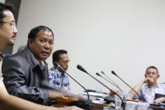 Hadir sebagai narasumber yaitu, Pimpinan Bawaslu Nasrullah, Komisioner KPU Ferry Kurnia Rizkyansyah, Anggota Komisi II DPR RI Arief Wibowo, dan Direktur Keuangan Kementrian Dalam Negeri Syarifuddin dan mengundang awak media baik cetak maupun elektronik. (HW)