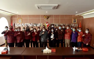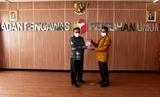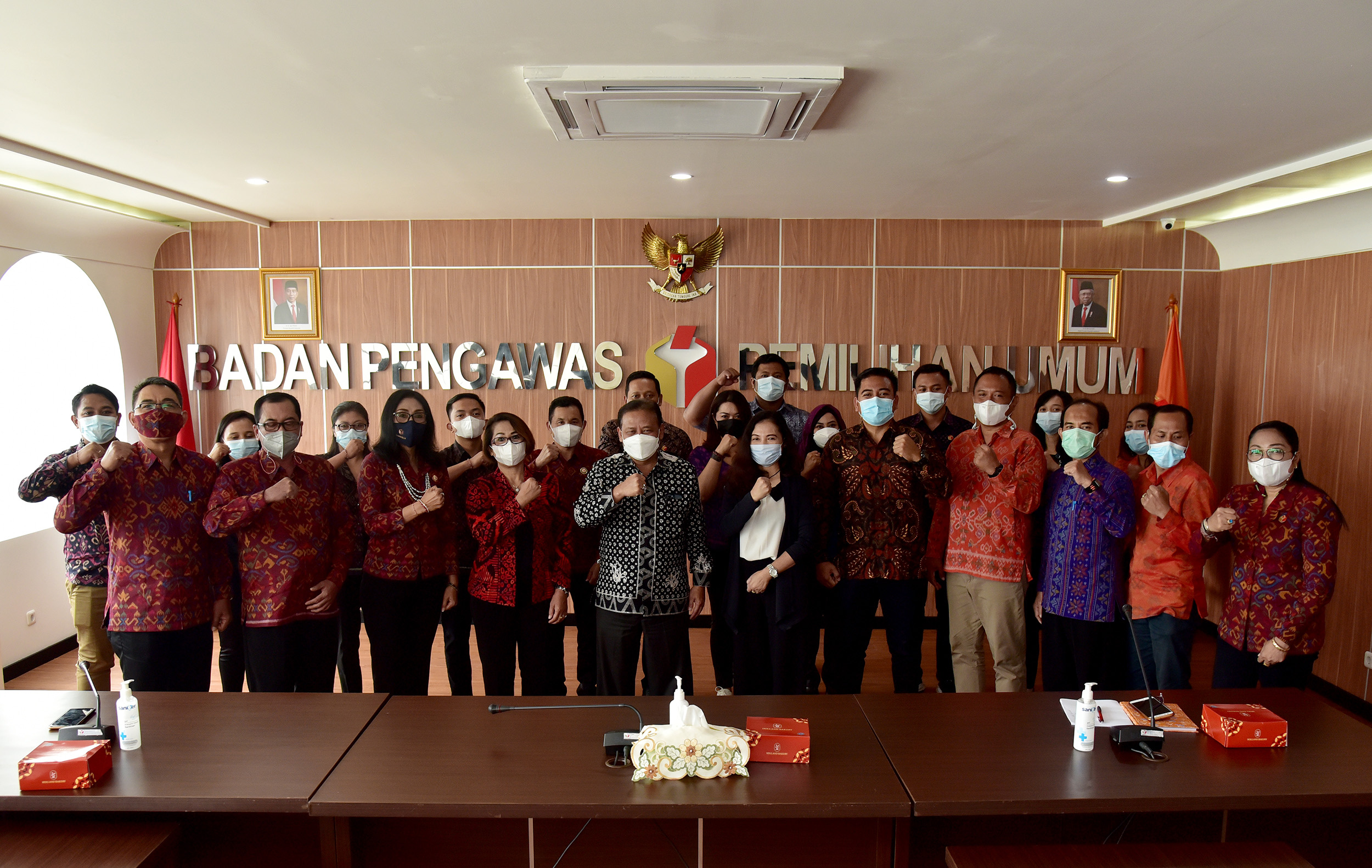 Jakarta, Badan Pengawas Pemilu- Sehubungan dengan berakhirnya pengawasan pemilihan Gubernur dan Wakil Gubernur, Bupati dan Wakil Bupati serta Walikota dan Wakil Walikota Tahun 2020, Ketua Bawaslu Abhan menerima laporan akhir divisi SDM (Sumber Daya Manusia) Bawaslu Provinsi NTT, Sulawesi Tenggara dan Provinsi Bali, Rabu (3/3/2021) di Gedung Bawaslu Ri, Jln MH Thamrin Jakarta Pusat. Photo: HUMAS-Nurisman