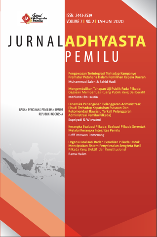 Penyelenggaraan Pemilihan Kepala Daerah (Pilkada) Serentak telah berlangsung sejak tahun 2015. Sepanjang penyelenggaraan Pilkada tersebut tidak luput dari sejumlah tantangan dan hambatan yang dihadapi oleh penyelenggara, terutama Badan Pengawas Pemilihan Umum (Bawaslu). Pada sisi pengawasan, persoalan yang dihadapi oleh Bawaslu berkaitan dengan Pengawasan dan Penyelesaian Sengketa Pemilihan berupa praktik politik uang, laporan dana kampanye, netralitas Aparatur Sipil Negara (ASN, pelanggaran yang Terstruktur, Sistematis, dan Masif (TSM), penyelesaian sengketa administrasi dan sengketa proses pemilu. Selain itu, Bawaslu harus melakukan pengawasan terhadap ujaran kebencian (hate speech and spin, politisasi SARA, politisasi identitas, konten media sosial (Social Media), Pasangan Calon Tunggal. Pada tahun 2020, Bawaslu mendapatkan beban kerja yang lebih ekstra dalam melakukan pengawasan karena penyelenggaraan Pilkada di tengah Pandemi Covid 19. Pada masa ini terjadi banyak penyesuaian mekanisme penyelenggaraan Pilkada dengan mengedepankan protokol kesehatan.
