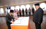 Jakarta, Badan pengawas Pemilihan umum- Ketua Bawaslu Rahmat Bagja melantik sekaligus mengambil sumpah janji anggota Panwaslih Aceh dan Bawaslu Sulawesi Tenggara (Sultra) periode 2023-2028. Bagja berpesan untuk segera bekerja mengawasi tahapan Pemilu 2024 yang telah berjalan.