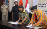 Jambi, Badan Pengawas Pemilih Umum - Sekretaris Jenderal (Sekjen) Bawaslu Gunawan Suswantoro secara simbolis menerima hibah tanah dan bangunan dari Pemerintah Kabupaten Tebo, Provinsi Jambi Selasa (8/3/2022). Hibah ini rencananya bakal digunakan untuk tempat bekerja jajaran Bawaslu Kabupaten Tebo.