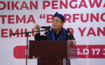 Serang, Badan Pengawas Pemilihan Umum- Anggota Bawaslu Puadi berharap kader Pendidikan Pengawasan Partisipatif (P2P) menjadi mata dan telinga rakyat dalam menjaga demokrasi. Pasalnya, kata dia, Pemilu 2029 mendatang memiliki tantangan yang semakin komplek seperti digitalisasi, disinformasi, politik uang, polarisasi identitas, dan intervensi elite.